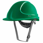 Der extrem widerstandsfähige Polycarbonat-Helm bietet zuverlässigen Schutz bei gleichzeitig geringem Gewicht. Die komfortable 6-Punkt-Textilbänderung mit integriertem Komfort-Schweissband sorgt für eine optimale Druckverteilung und angenehmes Tragen, auch bei langen Einsätzen. Das praktische ROTO-Drehradsystem ermöglicht eine schnelle und präzise Grössenanpassung. Praktische Luftschlitze ermöglichen eine zuverlässige Luftzirkulation und verhindern somit Hitzestau. Das Kinnband sorgt für zuverlässigen Sitz & Tragekomfort.