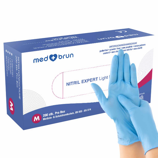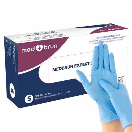 Nitrilhandschuhe Hellblau | latex- & puderfrei | mikrogeraute Fingerspitzen | Medbrun Expert