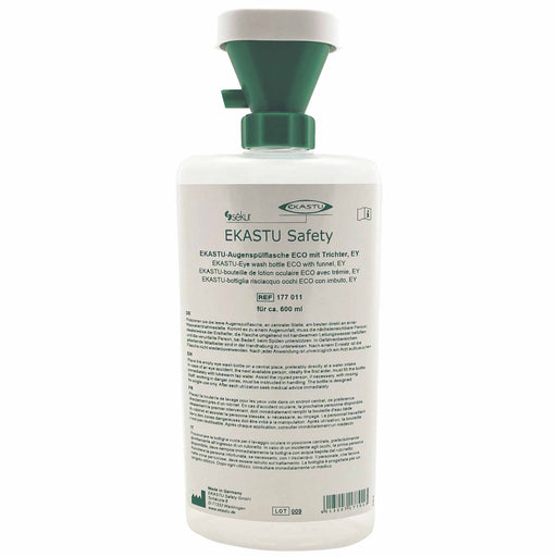 Augenspülflasche mit Trichter | 600 ml | anatomisch geformt | Medizinprodukt DIN EN 15154-4 | Ekastu Safety