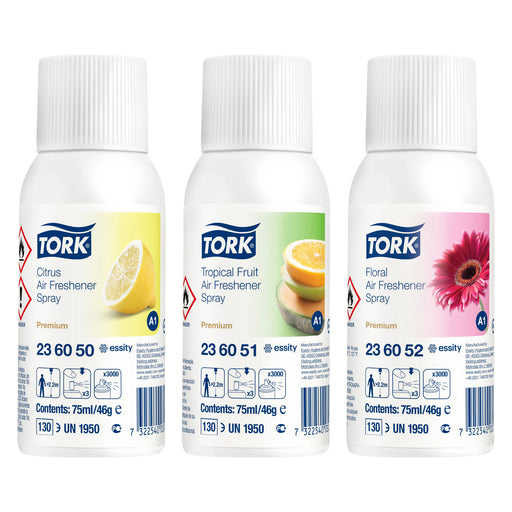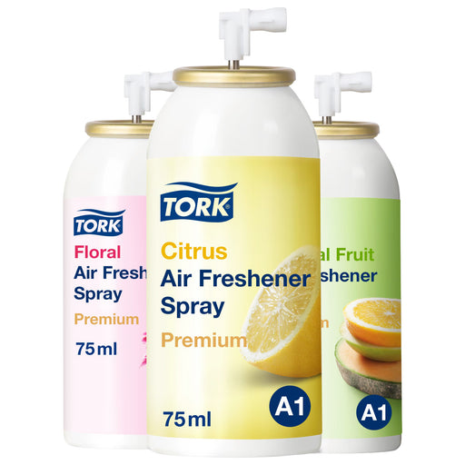 Vollständige Details anzeigenLufterfrischer A1 | Zitrusduft / Fruchtduft / Mixed | Premium | 75 ml | TORK 236056