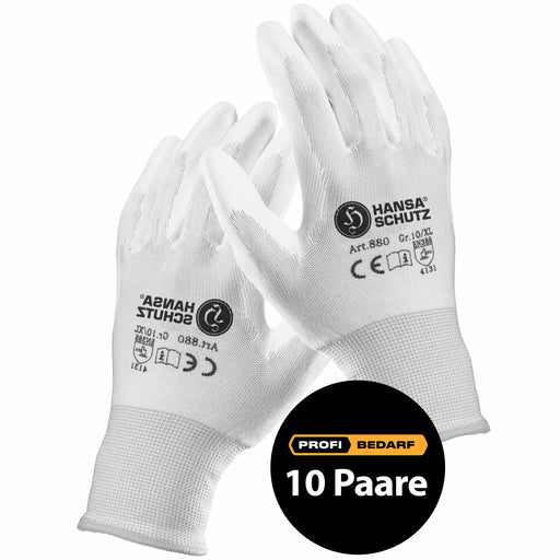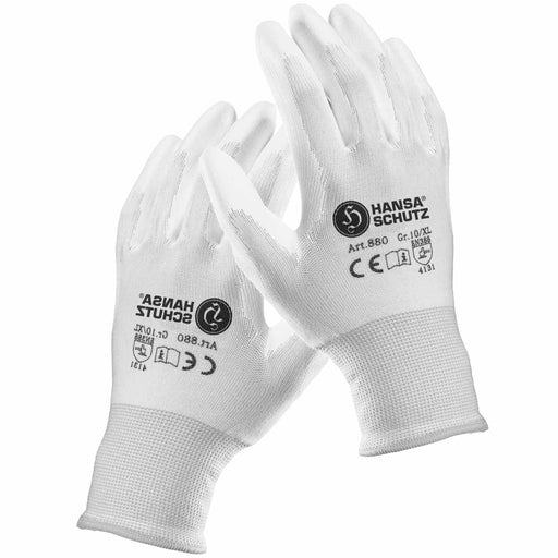 Arbeitshandschuhe Comfort | Nylon-Feinstrick | PU-Beschichtung | atmungsaktiv | Weiss
